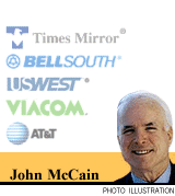 Viacom is hardly an isolated example. In January 1994, the Wall Street investment firm of Donaldson, Lufkin and Jenrette bought four television stations from Times Mirror Corp. for $322 million. A minority investor in DLJ's deal was a Cuban-American named Ibrahim Morales who invested, according to Forbes magazine, only $30,000 of his own money, or nearly one ten-thousandth of the stations' total value. Because Morales was on board, Times Mirror was able to use the FCC program to save nearly $50 million in taxes. The partnership set up by Donaldson, Lufkin and Jenrette to buy the stations sold them less than a year later to Ronald Perelman's New World Communications for $717 million. Morales, for his part, made at least $2 million, an investment return of more than 600 percent. McCain's bill would remedy that problem by preventing purchasers from reselling a telecommunications business they�d purchase for two years. His bill also places a $250 million cap on the tax relief from each sale. "It's kind of amusing," Kies, now managing partner at Price Waterhouse Coopers' Washington office, said. "$250 million of free income, but nothing more than that . . . the notion that McCain would actually entertain bringing back this type of thing is disgraceful." "There is no requirement that the tax benefit accrue, in whole or in part, to the minority-owned or -controlled purchaser," Kies had said in his testimony. "In many transactions it is possible that the minority-owned or -controlled purchaser is paying full fair market value for the property acquired even though the seller may be receiving a substantial tax benefit over and above the sale price for the broadcast property."